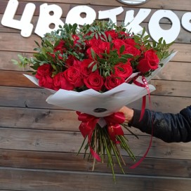 Увеличить Букет из Эквадорской розы 55 шт Рейтинг: 0/5 - 0 голосов 14 399 ₽ Доставка по городу в течение часа Подробнее об условиях доставки Заказать Купить в 1 клик Количество: 55 шт. Высота: 60 см. Состав: Упаковка Роза Эквадор Зелень Пунктуальное выполнение заказа – это приоритет службы доставки цветов Цветкофф. Способы оплаты: 02/11/11Europe/Moscowx302025