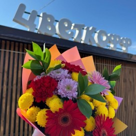 Увеличить Яркие мгновения Рейтинг: 0/5 - 0 голосов 3 800 ₽ Доставка по городу в течение часа Подробнее об условиях доставки Заказать Купить в 1 клик Состав: Хризантема-5шт Упаковка Зелень Гвоздика-1шт Гербера-4шт Пунктуальное выполнение заказа – это приоритет службы доставки цветов Цветкофф. Способы оплаты: 07/12/12Europe/Moscowx312025