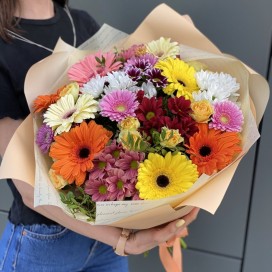 Увеличить Летний Рейтинг: 0/5 - 0 голосов 5 300 ₽ Доставка по городу в течение часа Подробнее об условиях доставки Заказать Купить в 1 клик Количество: 21 шт. Диаметр: 35 см. Высота: 50 см. Состав: роза кустовая Зелень гербера Белая хризантема Упаковка Пунктуальное выполнение заказа – это приоритет службы доставки цветов Цветкофф. Способы оплаты: 29/10/10Europe/Moscowx312025