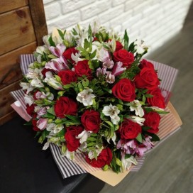 Увеличить Цветочная феерия Рейтинг: 0/5 - 0 голосов 11 700 ₽ Доставка по городу в течение часа Подробнее об условиях доставки Заказать Купить в 1 клик Количество: 45 шт. Высота: 60 см. Состав: Упаковка Зелень Роза Эквадор-25шт Альстромерия-20шт Пунктуальное выполнение заказа – это приоритет службы доставки цветов Цветкофф. Способы оплаты: 21/11/11Europe/Moscowx302025
