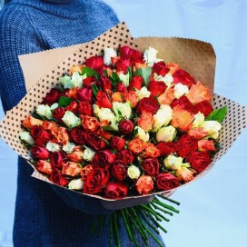 Увеличить Симфония чувств Рейтинг: 0/5 - 0 голосов 7 450 ₽ Доставка по городу в течение часа Подробнее об условиях доставки Заказать Купить в 1 клик Количество: 101 шт. Диаметр: 50 см. Высота: 40 см. Состав: Оранжевые розы Кения Белые розы Кения Красные розы Кения Упаковка Пунктуальное выполнение заказа – это приоритет службы доставки цветов Цветкофф. Способы оплаты: 01/11/11Europe/Moscowx302025